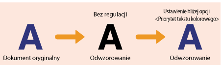 Można wykonać taką regulację, że czarny lub prawie czarny tekst zostanie odwzorowany na kolor bardzo zbliżony do oryginału, który został zeskanowany w kolorze.