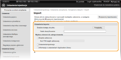 *W przypadku używania tego samego modelu urządzenia możliwe jest importowanie/eksportowanie danych ustawień urządzenia.