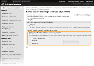 Jeżeli inicjowane są <Ustawienia zarządzania>Kod PIN do dostępu do Zdalnego interfejsu użytkownika jest także inicjowany. Po inicjalizacji należy zresetować kod PIN. <Zainicjuj menu>