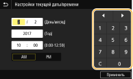 Диапазон значенийЗначения в ( ), отображаемые под полем ввода, представляют собой диапазон значений, которые можно ввести. Если отображаются клавиши, отличные от цифровых клавишЕсли отображаются клавиши <+> / <-> или / , можно нажимать эти клавиши для увеличения или уменьшения числового значения или для перемещения курсора. |
