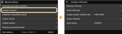 Galite keisti įvairius su ekranu susijusius parametrus, pavyzdžiui, ekrano kalbą: <Rodymo parametrai>
