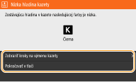 Ak sa správa zobrazí pri príjme faxu/i-faxu alebo nastavovaní výstupu automatického hlásenia, prijaté faxy/i-faxy a hlásenia sa uložia do pamäte, aby po tlači nevyzerali vyblednuté. Ak chcete pokračovať v tlači, aj keď je množstvo zostávajúceho tonera v kazete s tonerom nízke, nastavte položku <Pokr. v tlači pri níz. hlad. v kaz.> na možnosť <Zap.>. <Pokr. v tlači pri níz. hlad. v kaz.>