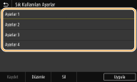 Kopyalama, Faks ve Tarama için aynı ayarların hızlı bir şekilde çağrılmasını sağlamak için bunları sık kullanılan ayarlarınız olarak kaydedebilirsiniz. Ana Ekran'a, kısayol düğmesi olarak kayıtlı ayar kombinasyonlarını ekleyebilirsiniz.