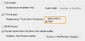 [TTLS Kullan] veya [PEAP Kullan] onay kutusunu seçin.