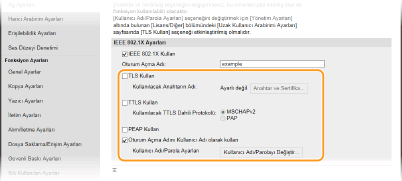 İşletim panelini kullanmaIEEE 802.1X kimlik doğrulamasını Ana Ekran'daki <Menü> öğesinden de etkinleştirebilirsiniz. <IEEE 802.1X Kullan>