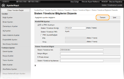 Bazı ayarları yalnızca, Sistem Yöneticisi Modunda oturum açtığınızda değiştirebilirsiniz.