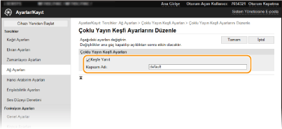 Makineyi, aygıt yönetim yazılımı çok noktaya yayın keşif paketlerine yanıt verecek şekilde ayarlamak ve aygıt yönetim yazılımı tarafından izlemeyi etkinleştirmek için onay kutusunu seçin.