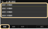 ファクスやスキャンでは、よく使う設定に宛先も登録できますが、登録後に変更することはできません。宛先を変更したい場合は、いったん設定を削除してから登録しなおしてください。