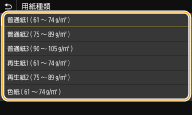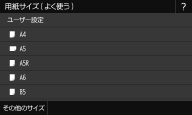 用紙をセットしても上の画面が表示されないときは常に同じ用紙を手差しトレイにセットするのであれば、その用紙のサイズや種類をあらかじめ登録しておいて操作を省くことができます。ただし、この登録が行われていると上の画面が表示されません。表示させるときは、手差しトレイでよく使う用紙サイズと種類を登録するで<用紙セット時に指定>を選びます。 |
