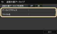 <送信文書アーカイブを使用>で<ON>を選ぶ