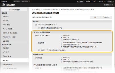 EメールやIファクスの送信を許可するかどうかを設定します。