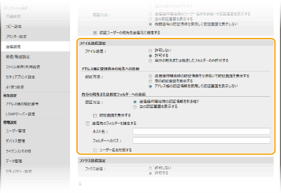 共有フォルダーやFTPサーバーへの保存を許可するかどうかを設定します。