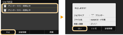 リモートUIから中止するリモートUIの[ジョブ状況]ページから印刷を中止することができます。印刷文書の状況を確認する アプリケーションから中止するアプリケーションによっては、印刷中に次のような画面が表示されます。[キャンセル]をクリックして印刷を中止することができます。 ![]() |
