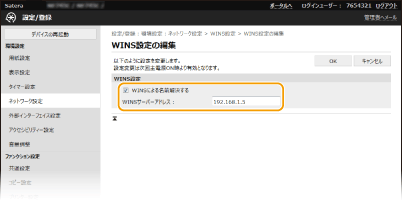 WINSはNetBIOS名(SMBネットワークでのコンピューター名やプリンター名)をIPアドレスに変換する名前解決サービスです。WINSを使用するには、WINSサーバーの指定が必要です。