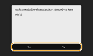 ถ้าคุณเลือก <ใช่> จะมีข้อความปรากฏขึ้น ให้ดูข้อความนั้น แล้วเลือก <OK> ค่าผสมของการตั้งค่าที่ลงทะเบียนไว้จะถูกเพิ่มในหน้าจอ Home เป็นปุ่มทางลัด