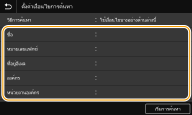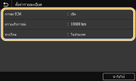คุณยังสามารถระบุ <การส่ง ECM> และ <ความเร็วการส่ง> จาก <เมนู> <การตั้งค่าฟังก์ชัน> <ส่ง> <การตั้งค่าแฟกซ์> อย่างไรก็ตาม การตั้งค่าที่ทำจาก <สมุดที่อยู่> จะเปิดใช้งานสำหรับการตั้งค่าโดยละเอียดของปลายทางที่ลงทะเบียนในสมุดที่อยู่ |