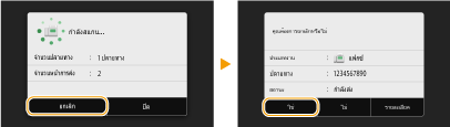 ถ้าคุณต้องการยกเลิกการส่งแฟกซ์ในทันทีหลังจากที่เลือก <เริ่ม> ให้เลือก <ยกเลิก> บนจอแสดงผลหรือกด