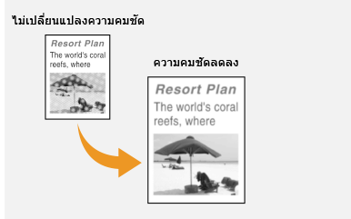 ![]() | คุณสามารถปรับความคมชัดของภาพ เพิ่มความคมชัดเพื่อให้ข้อความหรือลายเส้นที่เบลอมีความคมชัดมากขึ้น หรือลดความคมชัดลงเพื่อปรับปรุงภาพที่ปรากฏของรูปภาพนิตยสาร การปรับความคมชัด |