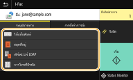 | | สมุดที่อยู่จะช่วยให้คุณสามารถระบุปลายทางโดยเลือกจากรายการของปลายทางที่ลงทะเบียนไว้หรือโดยค้นหาตามชื่อของปลายทางด้วยชื่อผู้รับ |