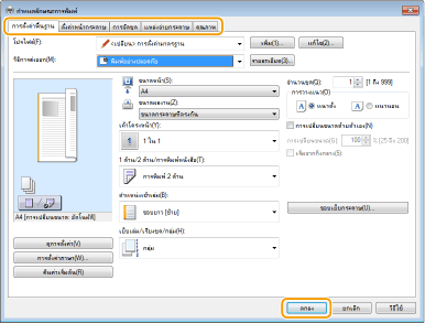 เลือกไดรเวอร์เครื่องพิมพ์ของเครื่องนี้ และคลิก [กำหนดลักษณะ] หรือ [คุณสมบัติ]