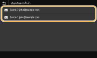 ![]() | คุณสามารถเลือกปลายทางจากปลายทางในอดีตได้ เมื่อคุณระบุปลายทางที่เคยใช้ก่อนหน้านี้ เครื่องจะกำหนดการตั้งค่าการสแกนเดิม เช่น ความเข้มที่คุณใช้ในครั้งสุดท้ายที่คุณส่งเอกสารไปยังปลายทางนั้น |
