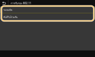 2 | เลือกวิธีการรับรองความถูกต้อง ![]() <ระบบเปิด> จะตั้งค่าการรับรองความถูกต้องระบบเปิด ซึ่งเรียกอีกอย่างหนึ่งว่า "การรับรองความถูกต้องแบบเปิด" <คีย์ที่ใช้ร่วมกัน> จะใช้คีย์ WEP เป็นรหัสผ่าน ![]() เมื่อเลือก <ระบบเปิด> เมื่อเชื่อมต่อกับ LAN แบบไร้สาย เครื่องจะพบข้อผิดพลาดในการรับรองความถูกต้อง หากการรับรองความถูกต้องคีย์ที่ใช้ร่วมกันถูกตั้งค่าบนเราเตอร์แบบไร้สาย หากเป็นเช่นนี้ เครื่องจะเปลี่ยนการตั้งค่าเป็น <คีย์ที่ใช้ร่วมกัน> โดยอัตโนมัติและพยายามเชื่อมต่ออีกครั้ง |