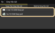 Để kiểm tra tình trạng các tài liệu đã gửi1 | Chọn tài liệu có trạng thái bạn muốn kiểm tra trong thẻ <Trạng Thái Công Việc Gửi>. ![]() Hiển thị thông tin chi tiết về tài liệu. Nếu bạn chỉ định nhiều điểm đích, số lượng điểm đích đã chỉ định được hiển thị trên màn hình. Để kiểm tra chi tiết của nhiều điểm đích đã chỉ định, chọn <Điểm đích>. |