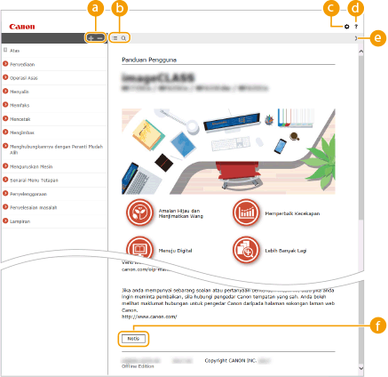 Klik untuk memaparkan maklumat tentang cara untuk melihat Panduan Pengguna, bagaimana untuk melakukan carian, dan maklumat lain.