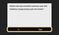 Jika anda memilih <Ya>, satu mesej muncul. Semak mesej tersebut dan kemudian, pilih <OK>. Gabungan tetapan berdaftar ditambahkan ke skrin Rumah sebagai butang pintasan.