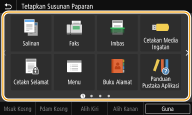 Anda boleh menambah butang pintasan ke skrin Rumah untuk fungsi yang kerap digunakan seperti <Salinan>, <Faks> dan <Imbas>. Contohnya, anda boleh menjalankan tugas dengan lebih cepat dan cekap dengan menugaskan turutan tetapan (cth. "Imbas kedua-dua muka dokumen asal, simpannya sebagai fail PDF yang dimampat tinggi dan hantarkannya melalui e-mel") ke butang tunggal.