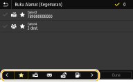 | | Buku Alamat membolehkan anda menentukan destinasi dengan memilih daripada senarai destinasi berdaftar atau dengan mencari mengikut nama untuk destinasi dengan nama penerima. |