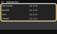 Menyemak versi perisian tegarAnda boleh menyemak versi perisian tegar dari panel operasi mesin. Setelah selesai operasi kemas kini perisian tegar, pastikan maklumat itu dilakukan dengan betul. Menyemak versi Perisian Tegar |