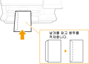 그림에 나오는 것처럼 플랩이 있는 가장자리가 왼쪽을 향하도록 봉투를 넣으십시오. |