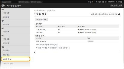 리모트 UI 화면소모품 확인