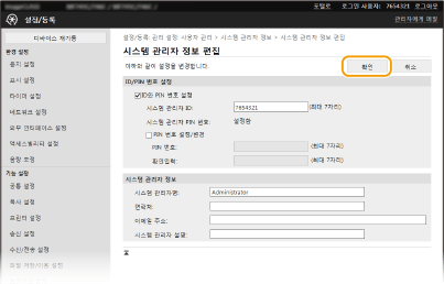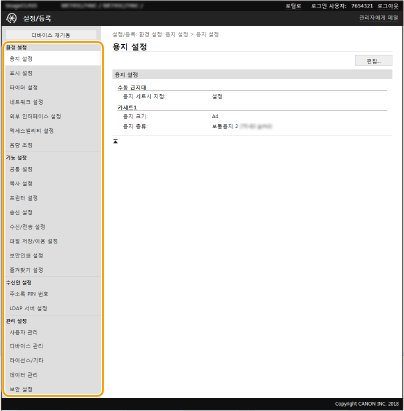 일부 설정은 시스템 관리자 모드로 로그인한 경우에만 변경할 수 있습니다. 일부 설정의 경우 여기에 기술된 방법과 다른 조작이 필요할 수 있습니다. |