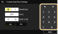 When you are supposed to enter only a numeric value, the numeric keys are displayed on the screen. Tap numeric keys to enter the numeric value.