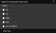 If the screen shown above is not displayed when paper is loadedIf you always load the same paper in the multi-purpose tray, you can skip the paper setting operations by registering the paper size and type as the default setting. When the default setting is registered, however, the screen shown above is not displayed. To display the screen, select <Specify When Loading Paper> (Registering Default Paper Settings for the Multi-Purpose Tray). |