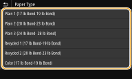 After the default paper setting is registered, the paper setting screen is not displayed when paper is loaded, and the same setting is always used. If you load a different paper size or type without changing the paper settings, the machine may not print properly. To avoid this problem, select <Specify When Loading Paper> in step 3, and then load the paper. |
