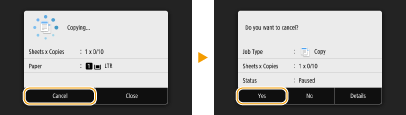 Se você deseja cancelar a cópia imediatamente depois de selecionar Iniciar, selecione <Cancelar> na tela ou pressione