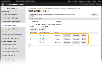 As políticas são aplicadas da posição mais alta para a posição mais baixa. Clique em [Para cima] ou [Para baixo] para mover a política para cima ou para baixo na ordem.