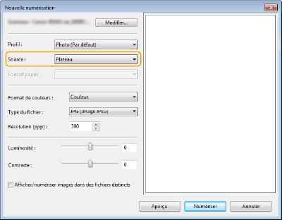 Pour vérifier l'image numérisée avec les paramètres spécifiés reflétés, cliquez sur [Aperçu].