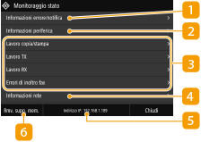 È possibile specificare se visualizzare l'indirizzo IP nella schermata <Monitoraggio stato> impostando <Visualizza indirizzo IP>.