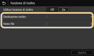 Selezionare <On> in <Utilizzo funzione di inoltro>.
