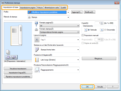 Specificare le impostazioni di stampa necessarie e fare clic su [OK].
