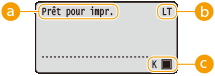 ![]() | L'afficheur affiche l'état de l'impression et les écrans permettant de faire les différents réglages. Il affiche également les messages d'erreur et l'état des cartouches de toner. |