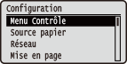 ) pour afficher l'écran du menu correspondant. L'illustration ci-dessous représente l'écran qui s'affiche lorsque vous appuyez sur