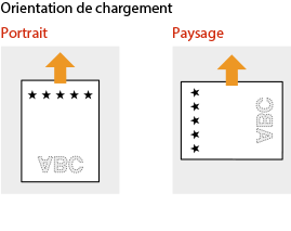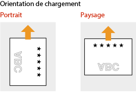 Lorsque vous imprimez sur du papier à en-tête portant un logo, faites attention à l'orientation du papier au moment du chargement. Chargez le papier en veillant à imprimer sur la face du papier portant le logo.
