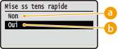 Si vous utilisez un réseauSi l'une des options ci-dessous est réglée sur <Oui>, la fonction de démarrage rapide est désactivée. RARP, BOOTP, IPv6 Réseau Si vous utilisez la fonction MEAPVérifiez si les applications MEAP installées prennent en charge la fonction de démarrage rapide. |