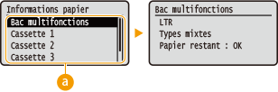 Sélectionnez l'alimentation papier dont les informations sont affichées.