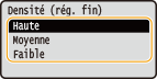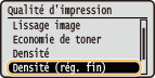 1 | Sélectionnez <Densité (rég. fin)> et appuyez sur .![]() | ||||||